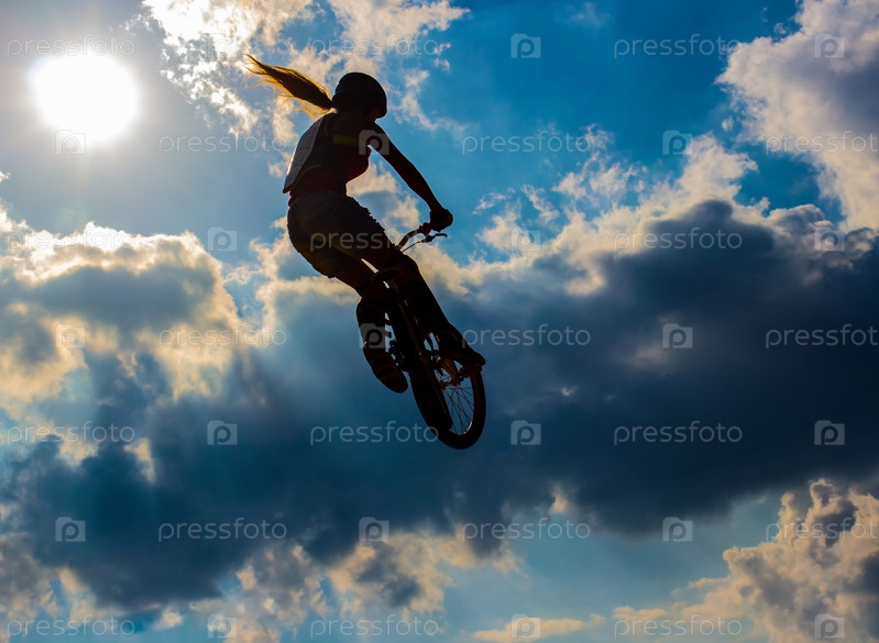 Силуэт велосипедиста на фоне неба