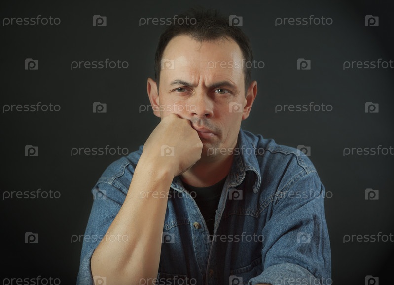 Портрет грустного человека на темном фоне