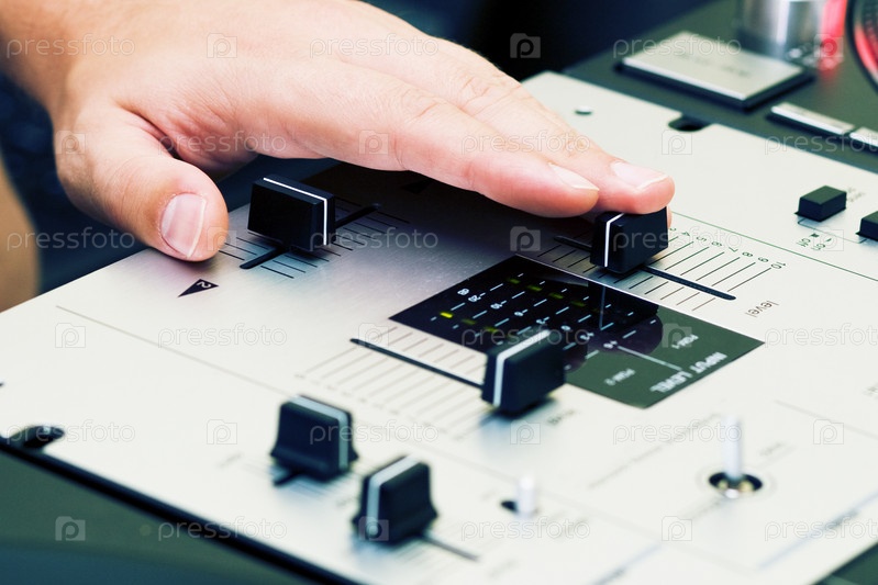 Рука диск-жокея на пульте микшера