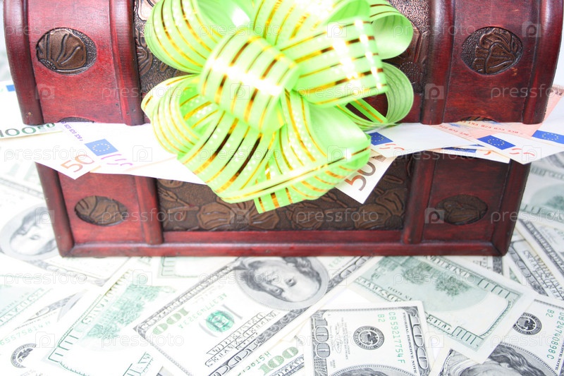 Бант на сундуке под долларами