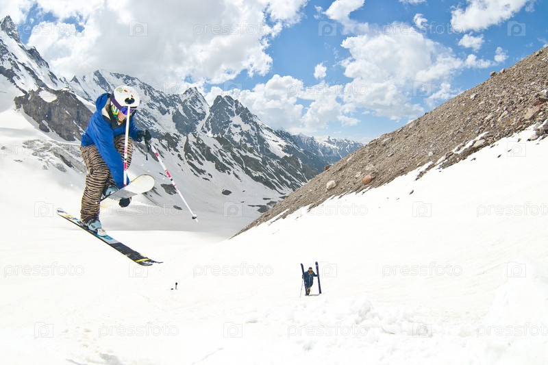 Фрирайдер в прыжке, Кавказ, лето