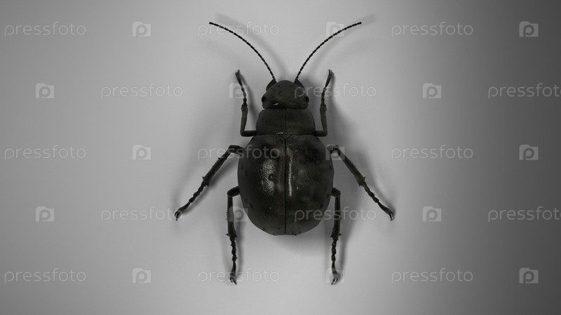 Черный жук на сером фоне