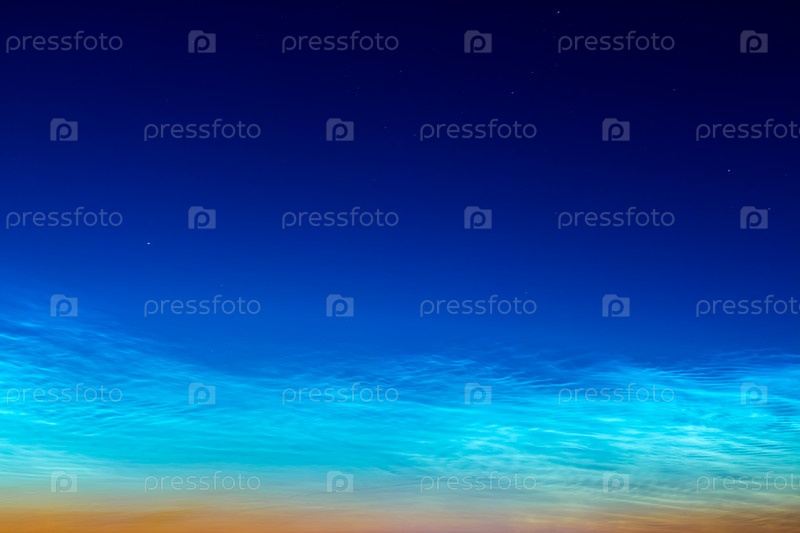 Серебряные перистые облака на синем небе перед восходом