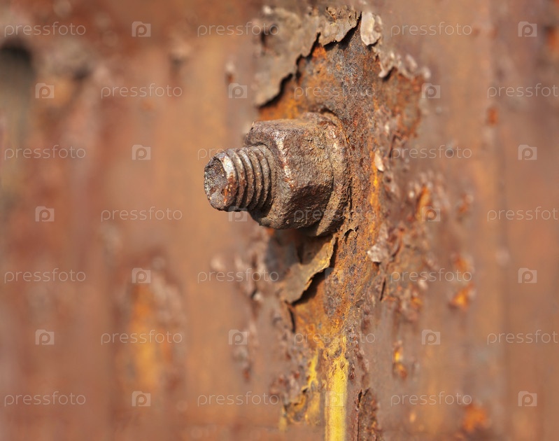 Ржавая гайка на облупленной поверхности