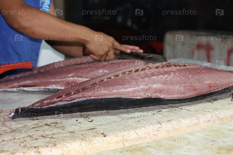 Разделывание рыбы на столе