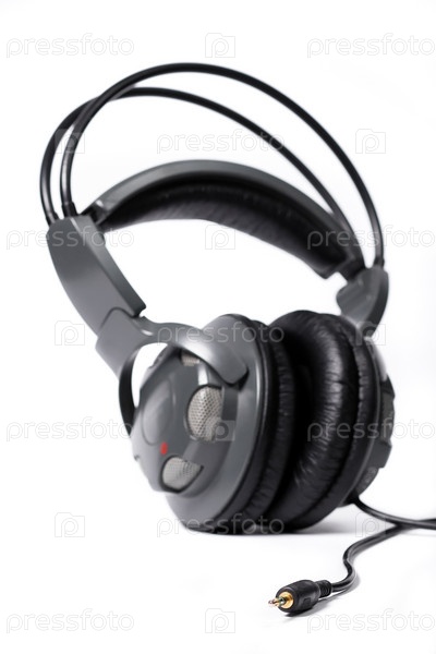 Мощные стереонаушники на белом фоне