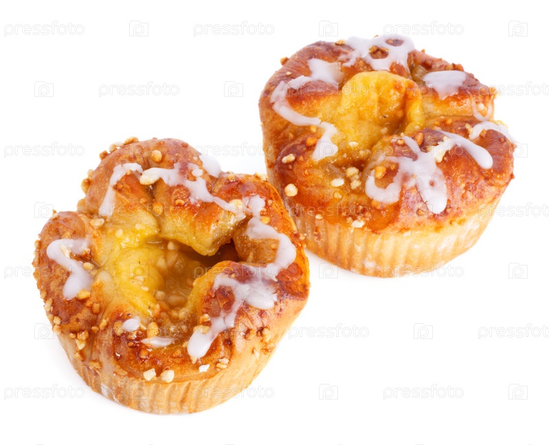 Два яблочных кекса на белом фоне