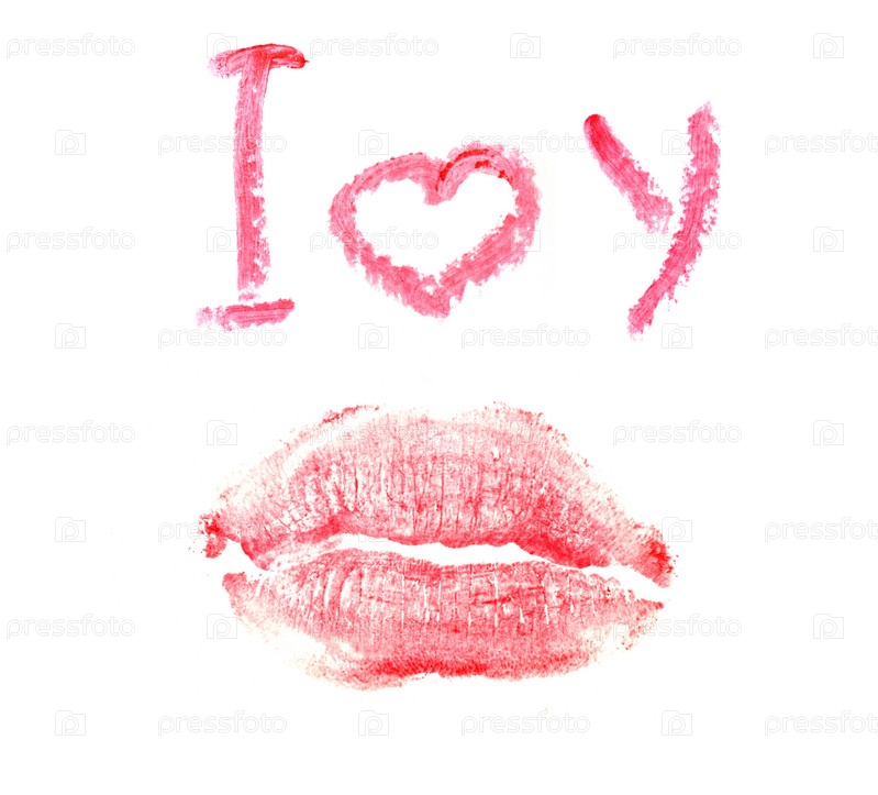 Надпись губной помадой "Я тебя люблю" на белом фоне