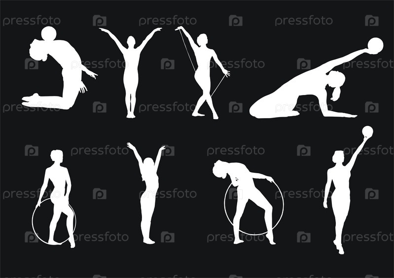 Силуэты гимнасток на черном фоне