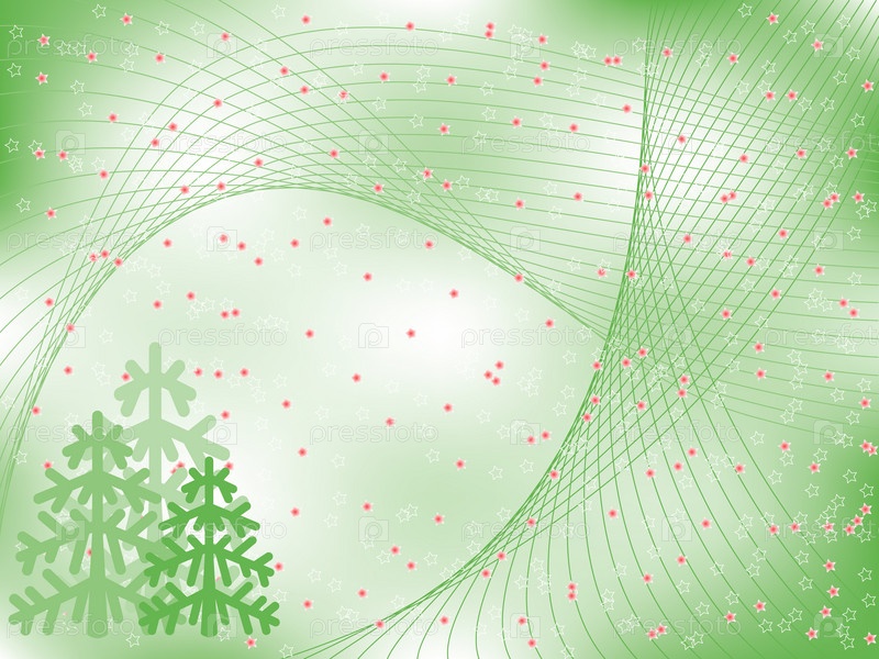 Зеленый праздничный фон с елками и снежинками