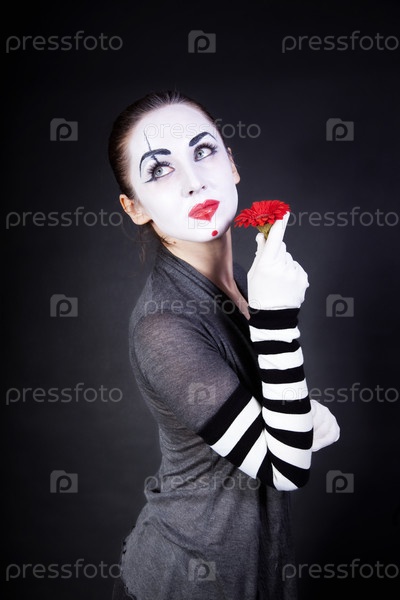 Мим с красным цветком