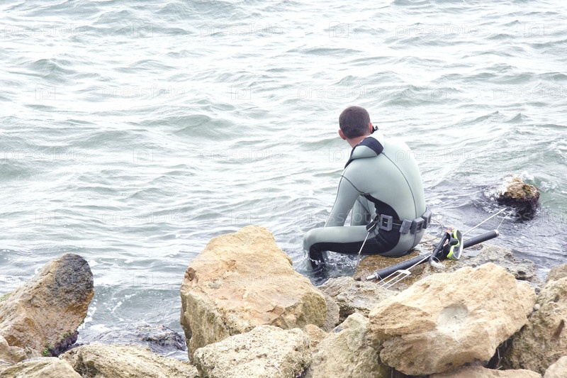 Подводный охотник готовится нырять