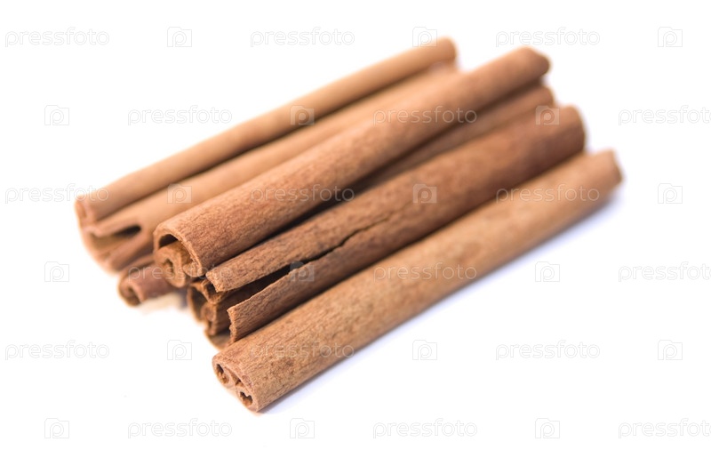 Несколько палочек корицы на белом фоне