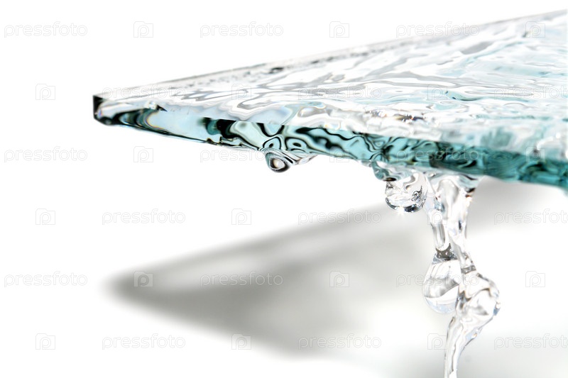 Абстрактная композиция со стеклом и проточной водой на белом фоне