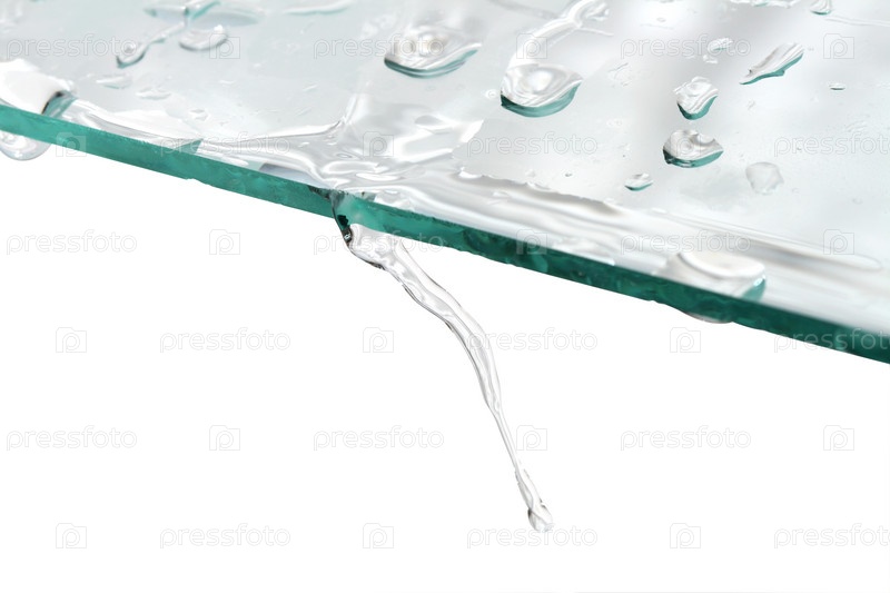 Абстрактная композиция со стеклом и проточной водой на белом фоне
