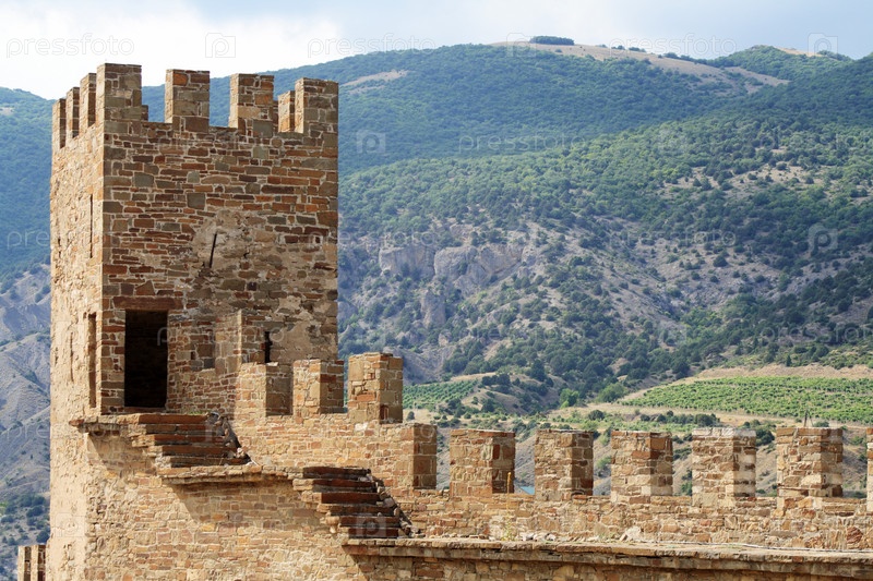 Пейзаж с древней Генуэзской крепостью в Крыму