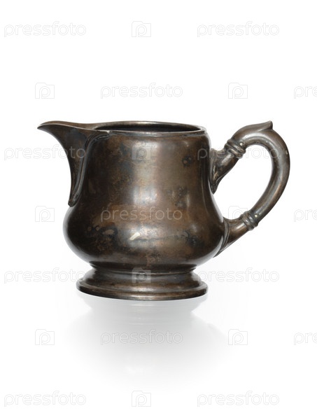 Древний бронзовый кувшин на белом фоне
