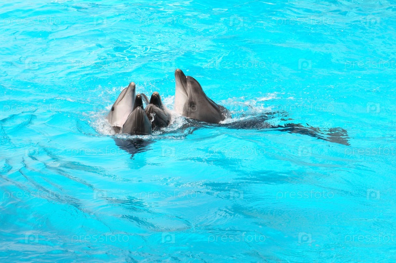Четыре дельфина танцуют в воде