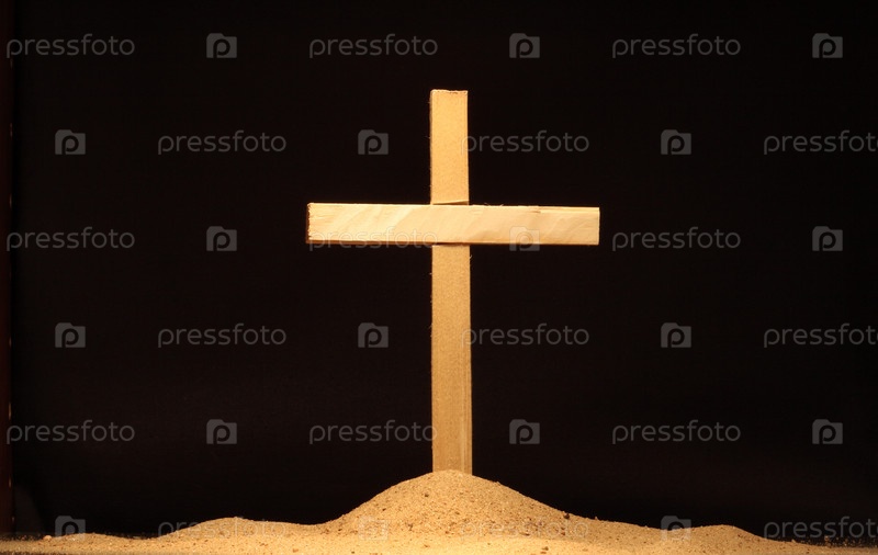 Деревянный крест в песке на черном фоне