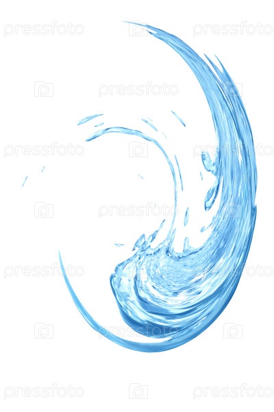 Закрученный всплеск воды на белом фоне