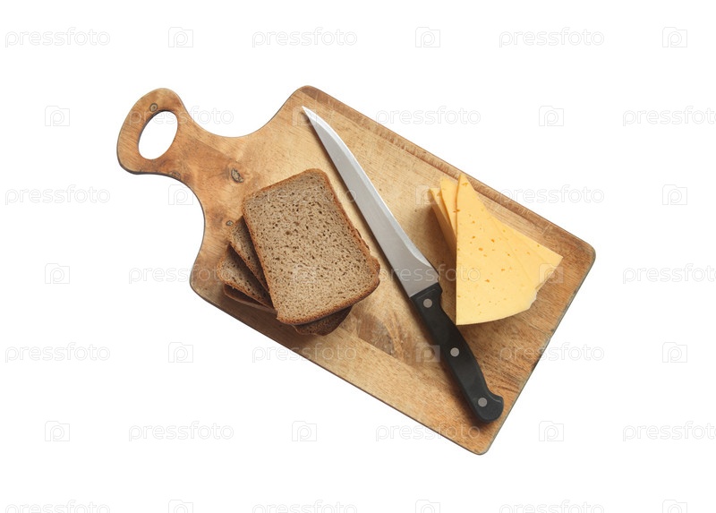 Хлеб, сыр и нож на разделочной доске