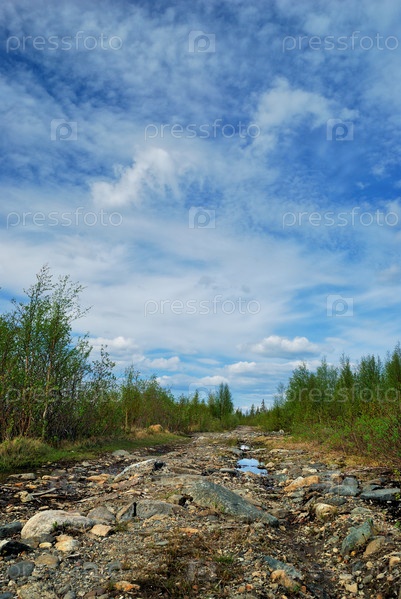 Лесная дорога с множеством камней
