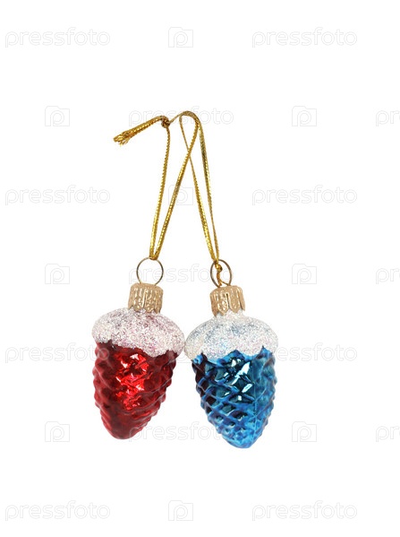 Две елочные игрушки на белом фоне