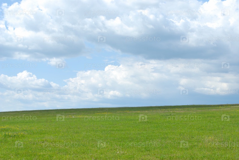 Зеленый луг на фоне облачного неба
