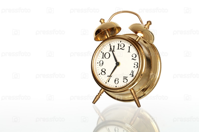 Металлический будильник на стеклянной поверхности
