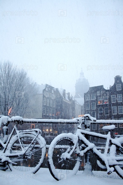 Велосипеды, занесенные снегом в Амстердаме