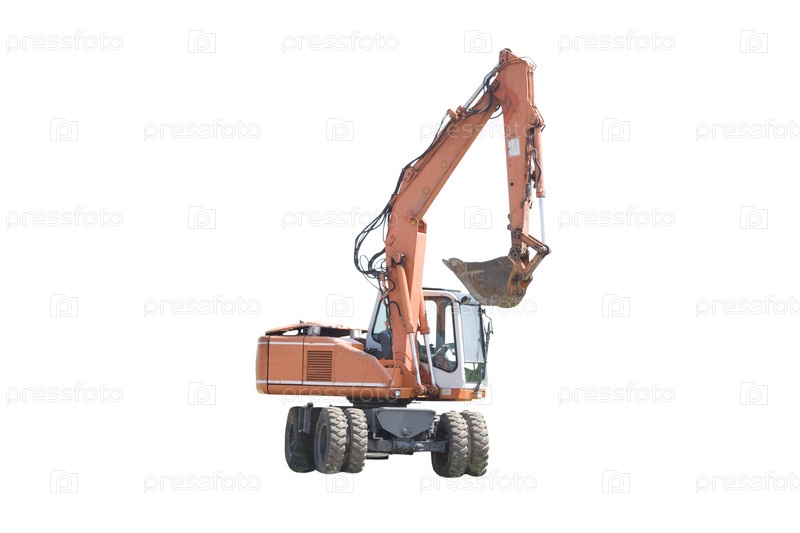 Экскаватор на белом фоне