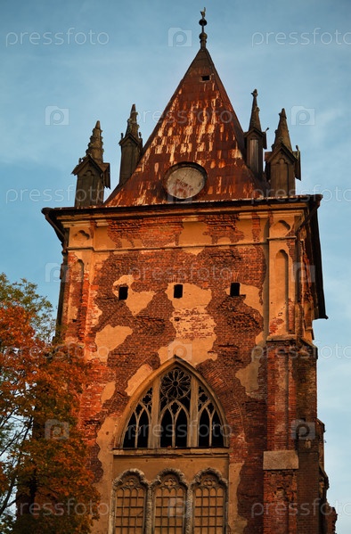Старая готическая башня на закате