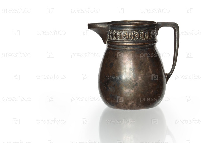 Древний бронзовый кувшин на белом фоне