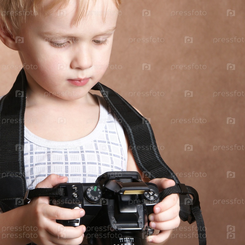 Ребенок в студии с профессиональной камерой