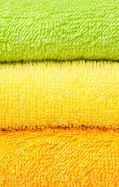 Стопка разноцветных махровых полотенец. Крупный план
