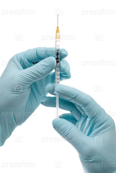 Руки в перчатках со шприцем
