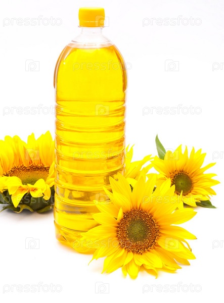 Подсолнухи и бутылка подсолнечного масла