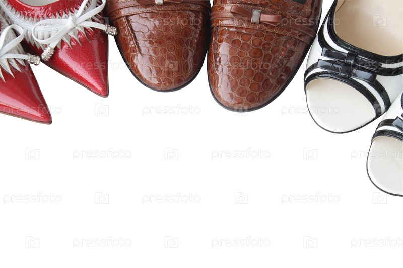 Три пары женских туфель на белом фоне