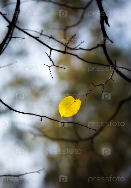 Одинокий лист осины осенью