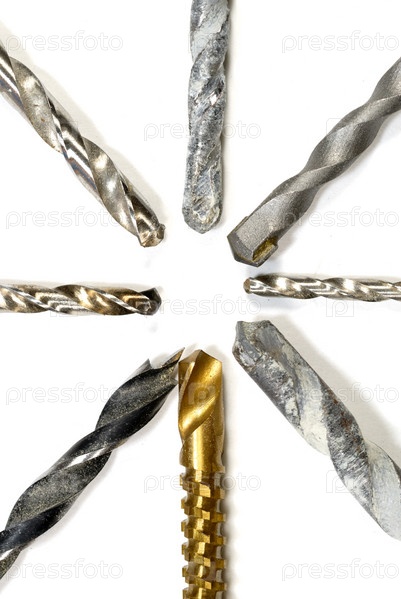 Разные сверла на белом фоне