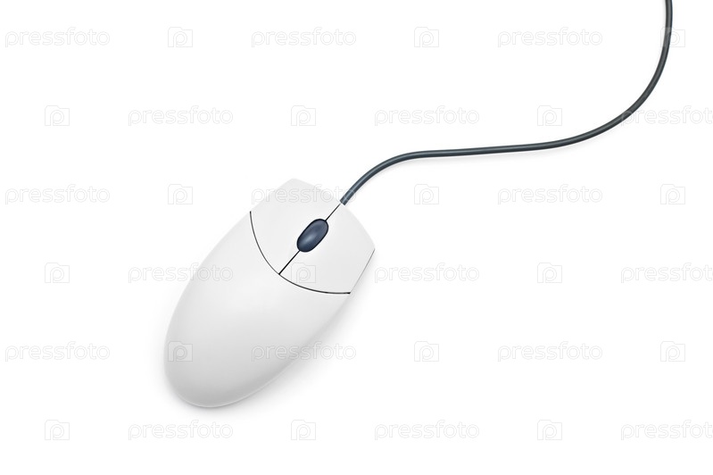 Белая компьютерная мышь на белом фоне
