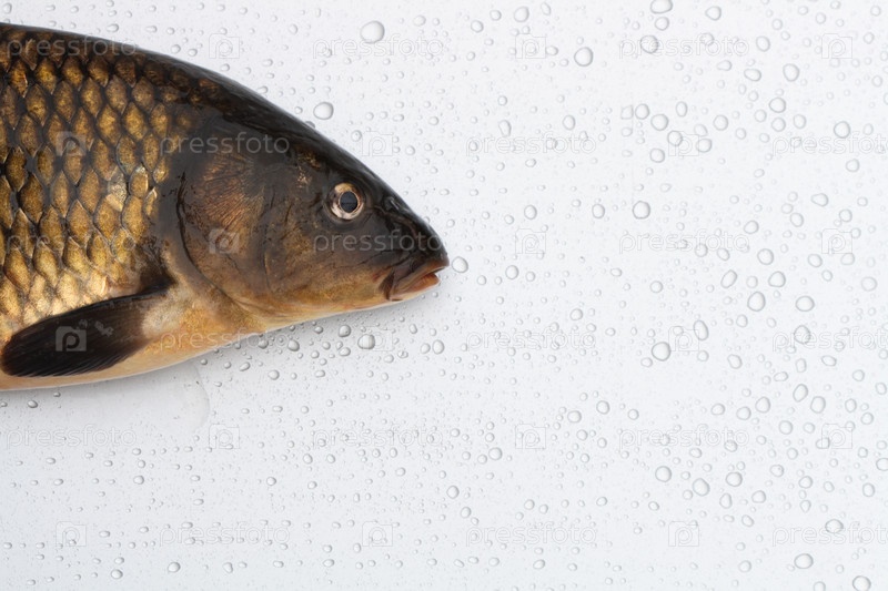 Свежая рыба на белом фоне с каплями воды