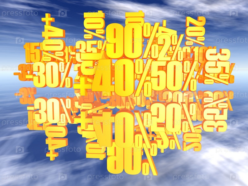 Много различных цифр со знаком процента на фоне неба