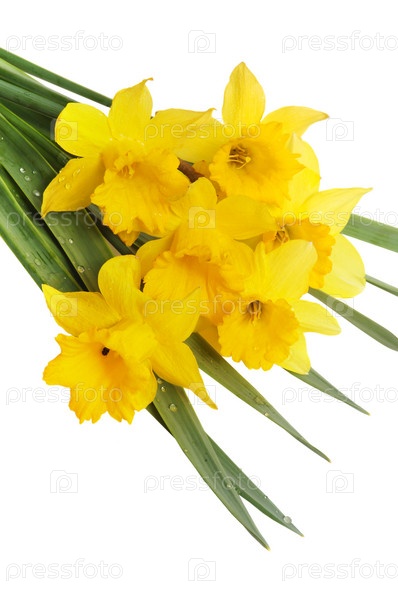 Желтый весенний нарцисс на белом фоне