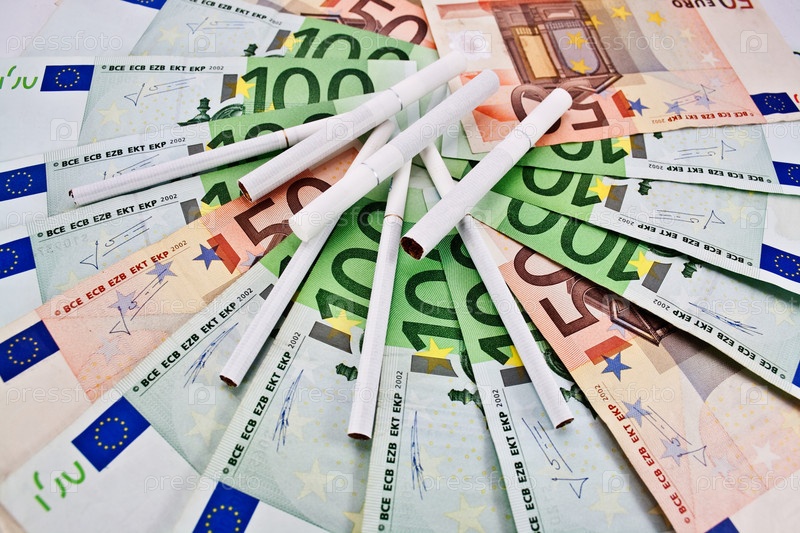 Банкноты евро и сигареты