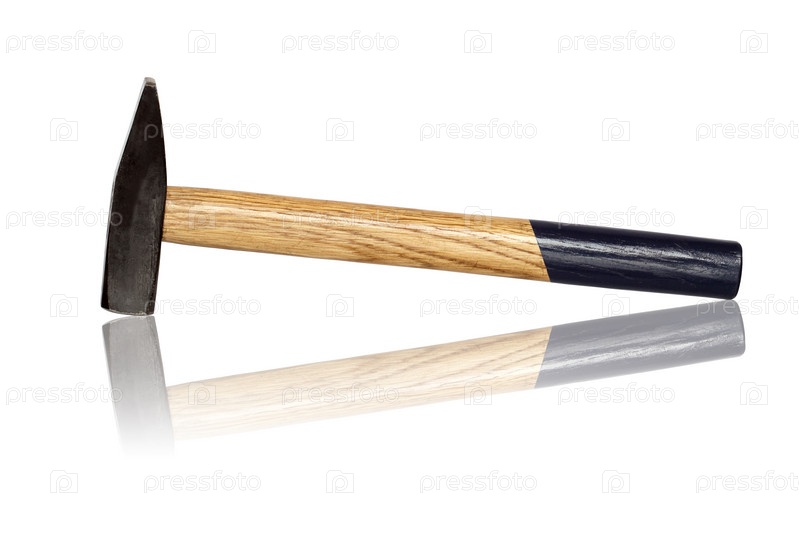 Молоток с деревянной ручкой на белом фоне