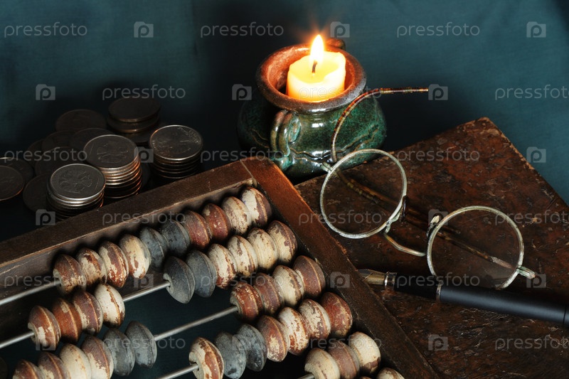 Натюрморт с очками, счетами, книгами и свечой