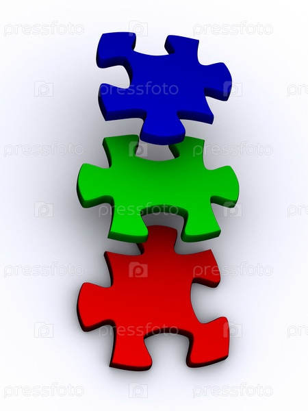 Серия из трех разноцветных головоломок , изолированная на белом фоне, 3D