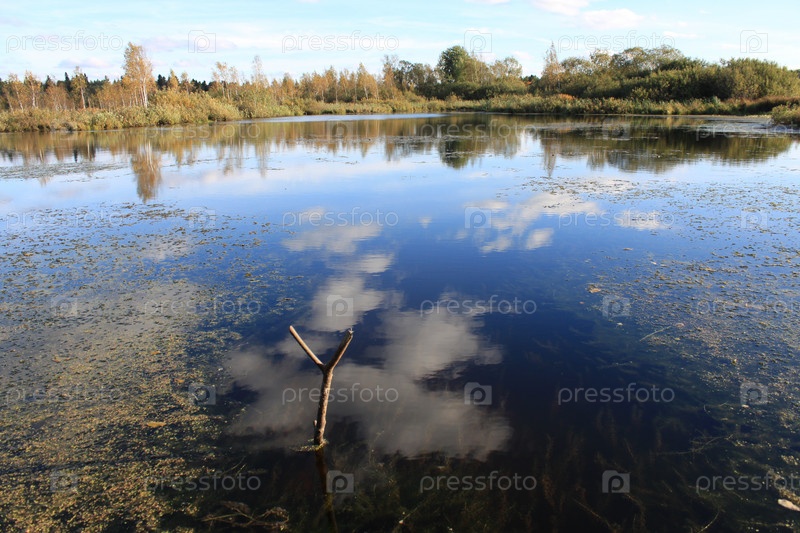 Осенний пейзаж: озеро, небо
