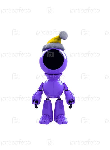 Фиолетовый робот в шапке на белом фоне